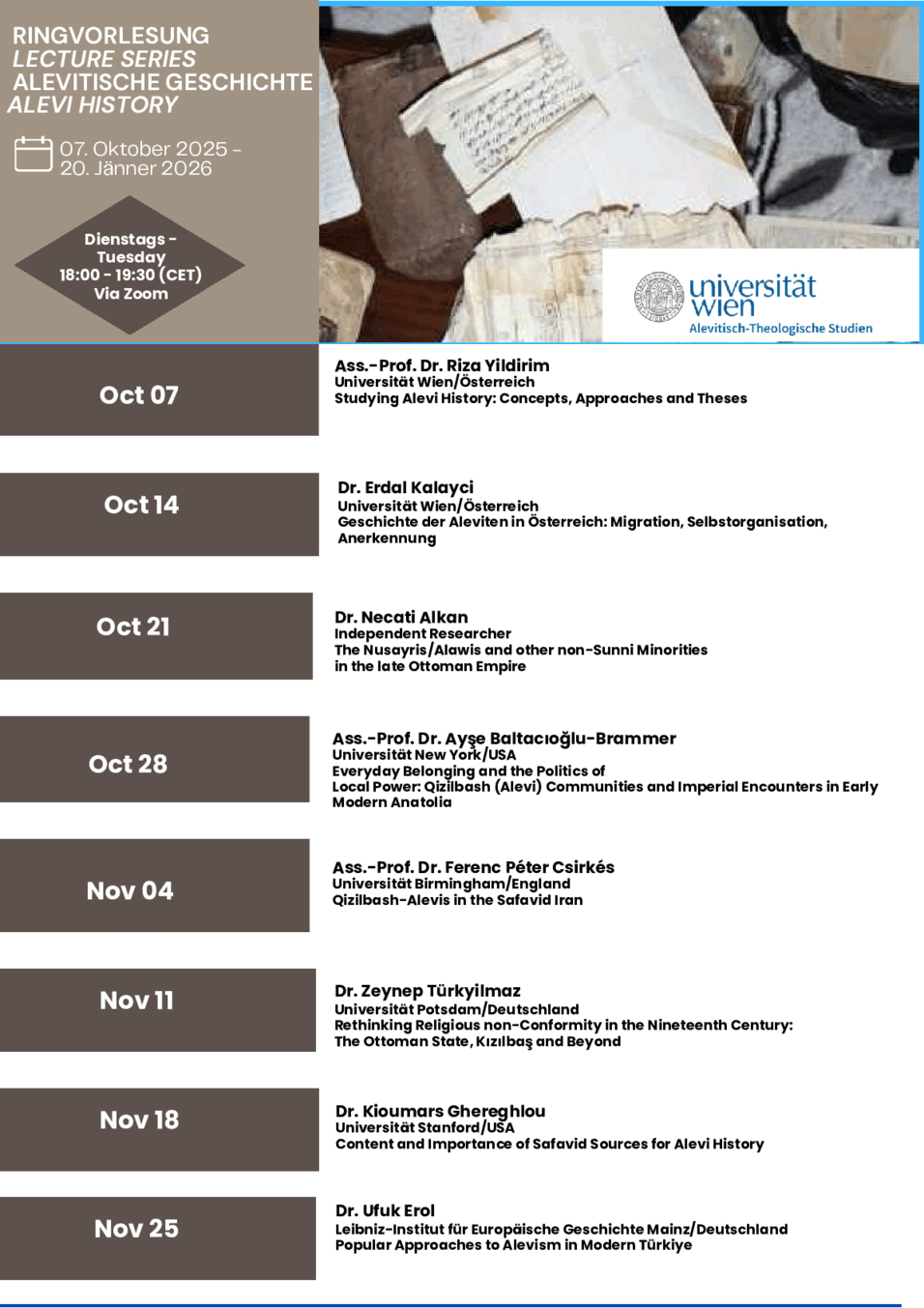 This lecture series provides an in-depth exploration of Alevi history, culture, and development. Everyone interested is warmly welcome!
