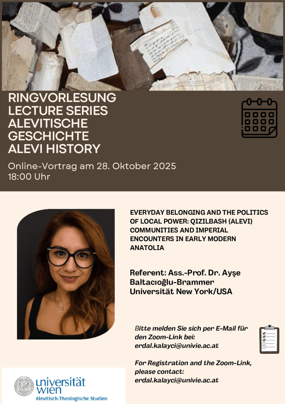 On October 28, Dr. Ayşe Baltacıoğlu-Brammer will give an online lecture as part of the lecture series "Alevi History" at the University of Vienna.