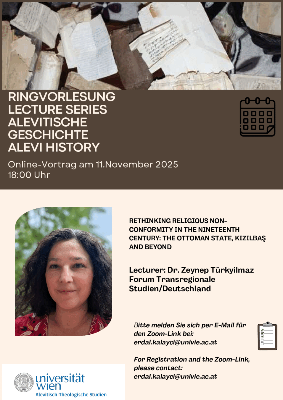 Den Zoom-Link bitte bei erdal.kalayci@univie.ac.at anfordern.